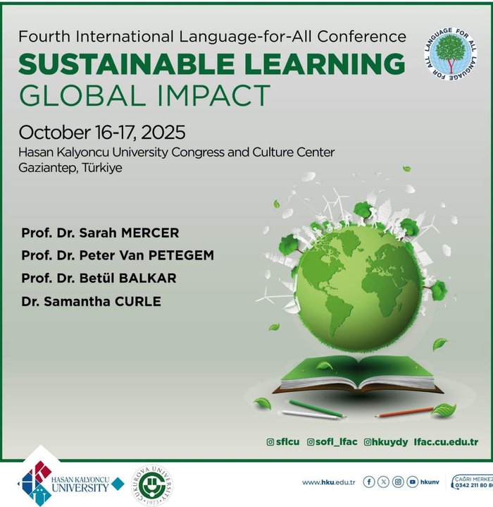 Hasan Kalyoncu Üniversitesi Yabancı Diller Yüksekokulu tarafından 16-17 Ekim 2025 tarihleri arasında “Dördüncü Uluslararası Herkes için Dil Konferansı (Fourth International Language-for-All Conference) (LFAC'25)” düzenlenecektir.