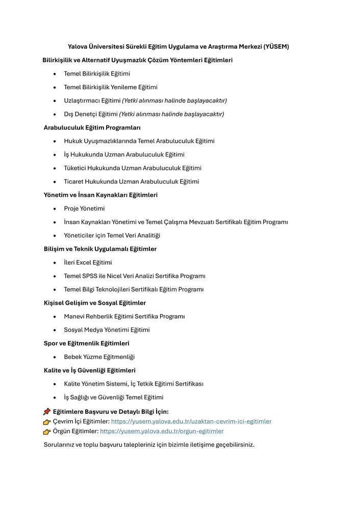 Örgün Eğitimler: https://yusem.yalova.edu.tr/orgun-egitimler